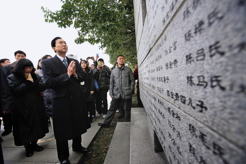 2013年1月17日,日本前首相鸠山由纪夫前往南京侵华日军南京大屠杀遇难同胞纪念馆参观访问