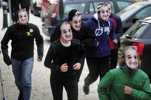 捷克大选在即,选民头戴施瓦岑贝格面具表支持