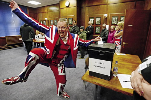 当地时间2013年3月10日,阿根廷和英国存有主权争议、由英方实际控制的马尔维纳斯群岛举行公投,决定是否继续保留该岛的英国海外属地地位