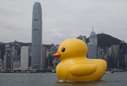 2013年5月22日,香港,重新出现在维多利亚港的大黄鸭依然吸引着无数游客的关注