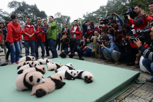 2013年9月29日,中国保护大熊猫研究中心2013年出生的熊猫宝宝集体亮相