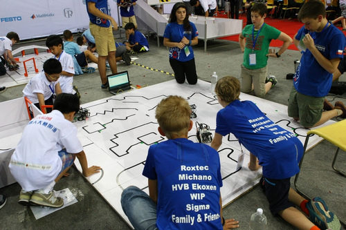 青少年组的机器人在比赛中。