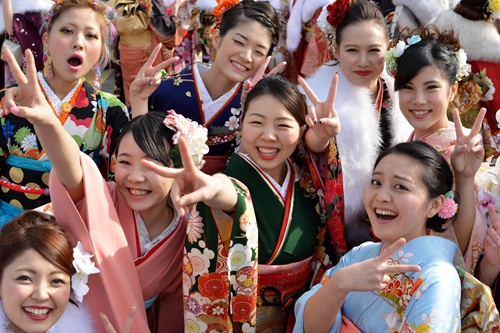 当地时间2016年1月11日,日本东京,满20岁的男女青年参加成人礼