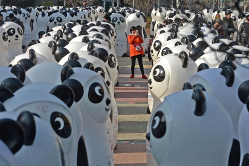 2016年1月8日,上海,800只憨态可掬的大熊猫回收箱展现在南京路步行街和淮海公园