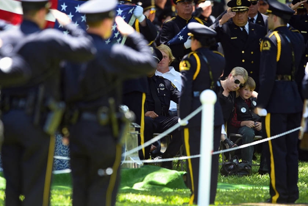当地时间2016年7月13日,美国达拉斯,遇难警察葬礼举行。7日在达拉斯举行反警察执法暴力和种族歧视活动期间,一名男子袭警,致死5名警察,打伤7名警察和2名平民