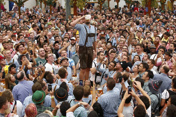 当地时间2016年9月17日,德国慕尼黑,第183届慕尼黑啤酒节开幕。慕尼黑啤酒节与英国伦敦啤酒节、美国丹佛啤酒节并称世界最具盛名的三大啤酒节,每年大约有600万人参与