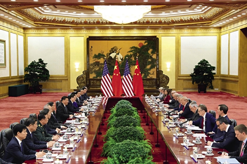 2017年11月9日,中国国家主席习近平在北京人民大会堂同美国总统特朗普举行会谈