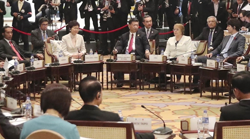 当地时间2017年11月10日,中国国家主席习近平出席在越南岘港举行的亚太经合组织领导人与东盟领导人对话会