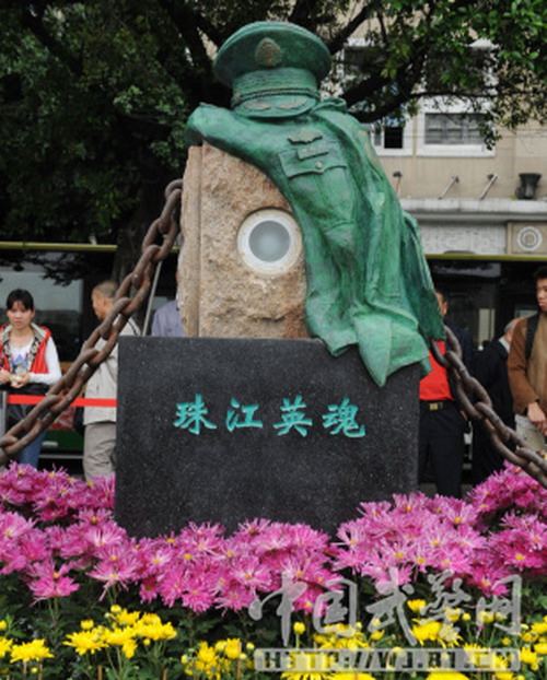 珠江英魂雕塑揭幕 广州市民自发缅怀郑益龙