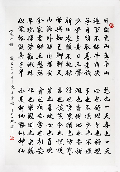 可以预见,以其老骥伏枥之心,云峰先生会更加忙碌,不为别的,为了他所钟爱的书法艺术,为了中华文化的薪火相传。当然,我们也有足够的理由翘首以盼。