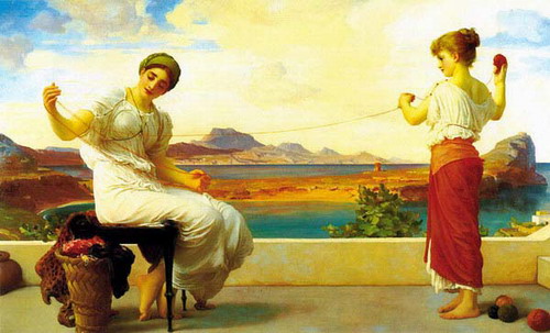 《缠毛线》 1878年 弗雷德里克·莱顿 英国 100.3cm×161.3cm 布 油彩