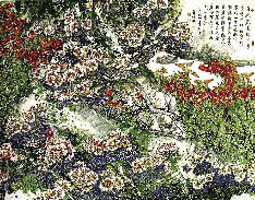 1994年春天,一幅巨大的中国画挂上中南海接见大厅的一侧墙壁。从远处看,这幅画上闪烁着类似法国印象派作品的斑斓色彩,走近看却是地道的中国式笔墨巧妙地塑造出的一草一木,整个画面上郁郁葱葱花团锦簇,像一个庆典活动上着意摆放的花坛,又见一泓清泉在花丛与山石间跳跃,仿佛叮咚之声不绝于耳。