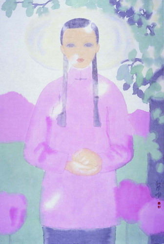 田黎明的人物画中充满阳光、空气与水,他用温文尔雅的方式,单纯、宁静的语言,创造了一个充满阳光和水分的干净世界,让现代人疲倦的心灵得到快乐和休息。我们看他的画,就像一个人在清凉的风中悠闲地散步。在他的画中阳光不仅起到了分布明暗结构位置、渲染气氛的作用,更重要的是在光与影的变幻与覆盖之中,使我们能感受到人与自然的一体,咀嚼自然的勃勃生气,获得一种透明清澈的精神状态。