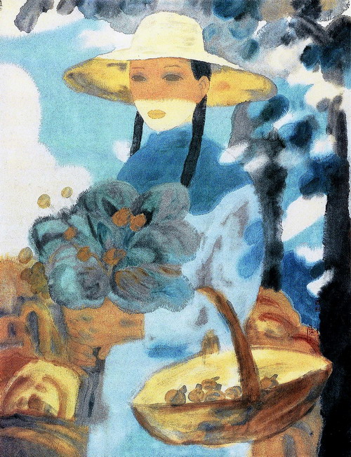 这次课堂写生就是后来我们看到的《小溪》。接下来的一段时间,田黎明以相同的方法创作了《老河》、《草原》等肖像,正像这些标题所揭示的那样,在这一组肖像中,人和自然悄然相遇了,一个人就是一处美妙的风景、一条清澈的溪流、一片向远方不断延伸的草原。从这组肖像开始,田黎明不仅找到了一种“方法”,重要的是获得了一种心性的自由,打通了进入传统绘画源流的神秘通道。他在《走进阳光》中有这样一段描述:“夏日的一天清晨,我向东走在大街的人行道上,行人中有一位妇女头戴一顶淡黄色的帽子,逆光看去,帽子纯黄透明,我一下产生想要画草帽的感觉。在后来一系列的肖像画里,草帽已作为一种淳朴的感觉并带有符号的意味来象征自然朴素的情景。 ”从具体的意象中来体现笔墨的趣味,传达艺术家对生活、对自然的体悟,书写艺术家在特定环境下的个人性情,这正是中国画写意精神的奥妙所在。
