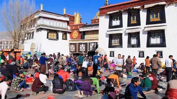 冬天去西藏,你可以在大昭寺前的广场享受独自发呆的冬日阳光充沛,磕长头的藏民从容经过;