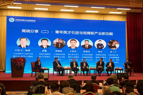 人社部留学人员和专家服务中心留学人员服务处处长杨凯主持高端分享“青年英才引进与培育新产业新动能”。