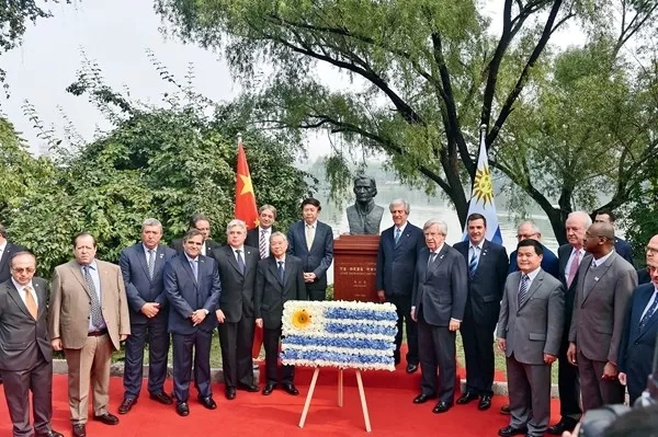 另外一件推动双边关系的事情是开始了与乌拉圭广泛阵线的交流。在乌拉圭一百多年来的民主政体中,历来是红党、白党两大传统政党轮流执政。广泛阵线成立于1971年,起初力量还不够壮大。我从政党工作的全面性和前瞻性出发,开始与广泛阵线接触。首先请巴斯克斯主席(Tabaré Ramón Vázquez Rosas)到使馆作客,主动就党际交流同他交换意见。巴斯克斯主席感谢中国大使重视与广泛阵线的关系,同时表示很高兴能够通过大使与中共中央对外联络部建立联系,并就人才培训和党务工作开展交流活动。他还对我拜会蒙德维的亚市市长和计划利用两国节庆时机、同蒙市开展文化交流活动甚为赞赏。蒙市可谓广泛阵线的一个重大活动据点,几任市长皆由广泛阵线领导人担任。