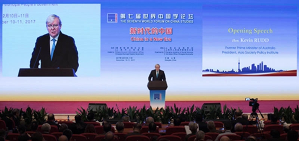 澳大利亚前总理陆克文在上海举办的第七届世界中国学论坛进行主旨发言《新时代的新汉学》