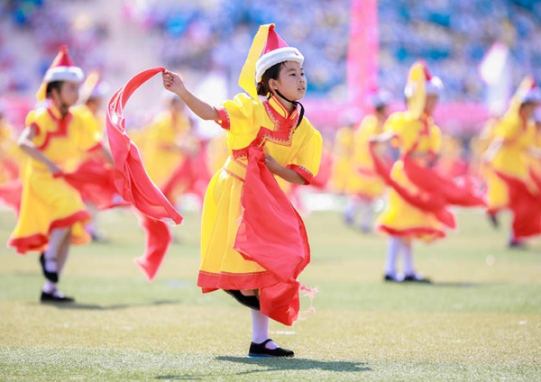 呼和浩特市小学生表演内蒙古民族舞蹈