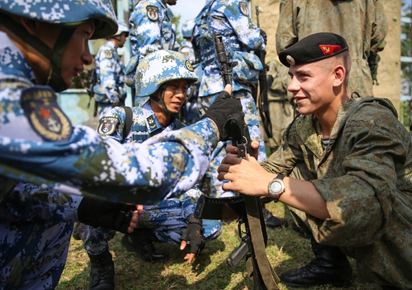 三是深入推动中外军队联演联训。中国军队坚持不结盟、不对抗、不针对第三方的方针和战略互惠、平等参与、对等实施的原则,与外国军队的联合演习和联合训练,对促进互信合作、借鉴有益经验和加强军队现代化建设具有积极作用。上海合作组织框架内联合反恐军事演习呈现机制化发展。2002年,中国与吉尔吉斯斯坦举行首次中外实兵联合反恐军事演习;2003年,与上合组织成员国共同举行首次中外多边联合反恐军事演习;2006年,与塔吉克斯坦举行联合反恐军事演习;近10年来,与俄罗斯等上合组织成员国举行了10余场“和平使命”系列联合反恐军事演习。海上联合演练实现常态化,2003年,中国与巴基斯坦举行首次中外海上搜救演练,结合中外海军舰艇互访等活动,迄今已与印度、法国、英国、澳大利亚、泰国、美国、俄罗斯、日本、新西兰、越南等国海军举行搜救、通信、编队、潜水、护航等课目的双边多边海上演练。陆上联合训练广泛开展,2007年与泰国举行首次中外陆军联合训练以来,与巴基斯坦、印度、新加坡、蒙古、罗马尼亚、泰国等国举行反恐、安保、维和、山地作战、两栖作战等课目的联合训练,探索实施混合编组、共同施训的新模式。
