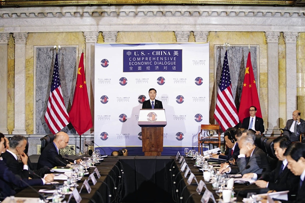 当地时间2017年7月19日,首轮中美全面经济对话在美国华盛顿举行,中国国务院副总理汪洋与美国财长姆努钦、商务部长罗斯共同主持对话。图为中国国务院副总理汪洋致辞