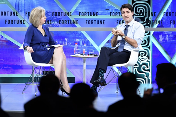 2017年12月7日,2017年《财富》全球论坛上,加拿大总理贾斯廷。特鲁多以“来自加拿大的视角”为主题发言