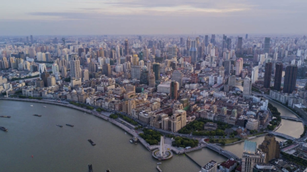 上海,北外滩航拍俯瞰浦西浦东全景