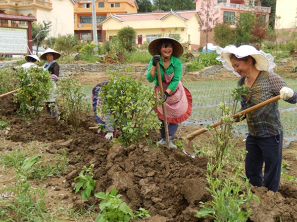 以妇女为主力的农业队把撂荒地全种上果蔬、苗木