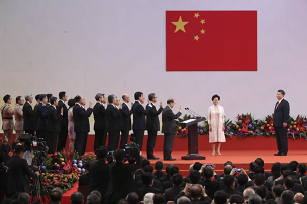 2017年7月1日,庆祝香港回归祖国20周年大会暨香港特别行政区第五届政府就职典礼在香港会展中心隆重举行。中国国家主席习近平监誓,香港特别行政区第五届政府主要官员在林郑月娥带领下宣誓就职