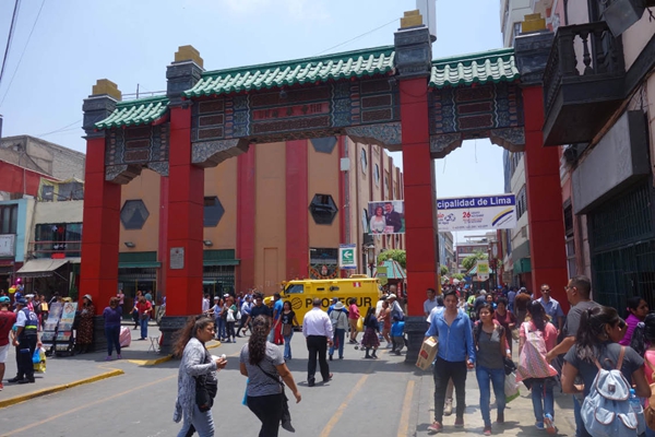 在秘鲁首都利马加邦街的“中华坊”牌楼