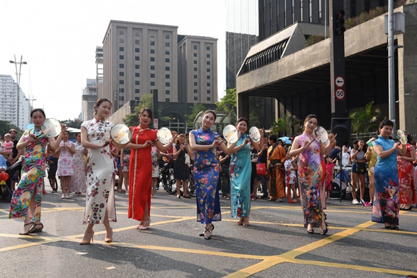 巴西圣保罗华侨华人演绎“旗袍快闪秀”