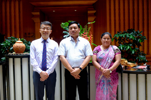 尼泊尔副总统南德·巴哈杜尔·普恩(中)携夫人与西双版纳安纳塔拉度假酒店代理总经理杨震林先生(左一)