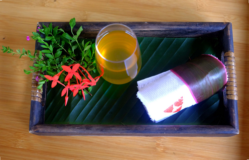 这款专为此次来访贵宾定制的特色欢迎饮料由本地香茅草、柠檬和薄荷调制而成,香茅草是西双版纳重要的一味香料,有着独特的清香,混合薄荷的清凉加上柠檬的酸爽,不仅消暑解渴,更表达了酒店团队对贵宾们的质朴的欢迎与祝福。