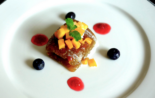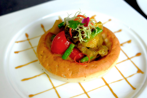 鸡肉细嫩却略有嚼头,食之口齿留香,闻到那浓郁的香料香味就已经让人垂涎欲滴,佐以地道的番茄喃咪,吃到嘴里初感到番茄的酸甜,紧接而来微微的辣味越发使人欲罢不能,为用餐贵宾们成功打造了味蕾上的惊喜!