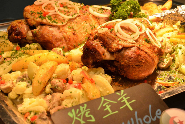 阿尔及利亚人奉伊斯兰教为国教,所以不吃猪肉,也不太喜欢吃海参、鱼、虾之类的东西。品坊餐厅的阿尔及利亚美食节,当然不能错过当地的特色美食:库斯库斯,这是一种用清水、橄榄油、牛羊肉、蔬菜和晒过的小麦等做成的面食;清真美食,不能错过的烤全羊,肉质细腻,皮酥肉嫩,令人回味无穷;塔吉兔配橄榄,这道菜不仅高蛋白、低脂肪,而且兔肉中透着橄榄的清香。