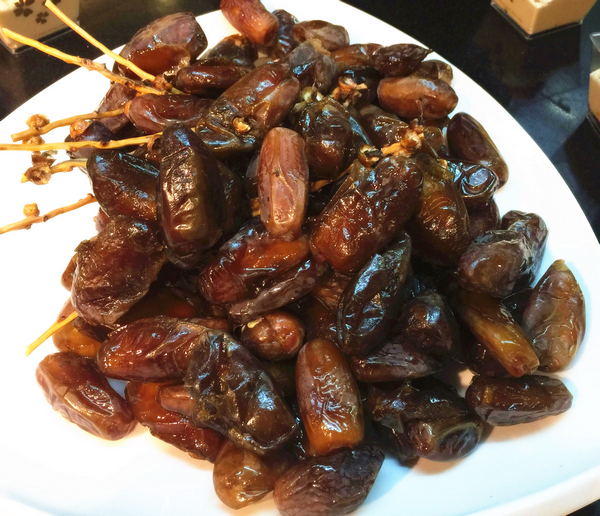 除了特色菜,自助餐厅的各式沙拉、寿司、海鲜和铁板扒类也是让人目不暇接。还有很多甜品可供品尝,更有难得一见的阿尔及利亚蜜枣。