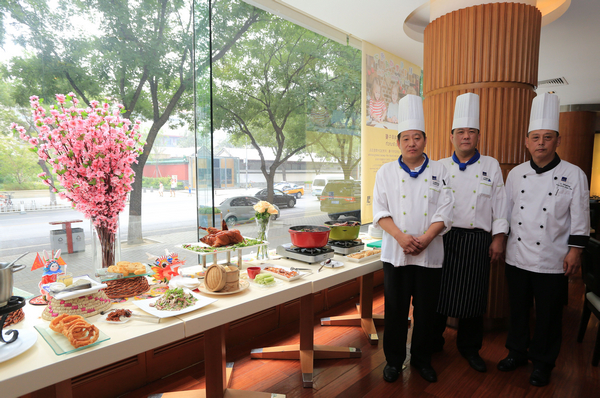 “品坊”餐厅作为四星级酒店中的国际美食自助餐厅,不仅日常要满足酒店内的宾客,更由于地处繁华的王府井商区,要对外接待很多慕名而来的客人。餐厅的中餐厨师长和师傅们都是经过国际餐饮管理培训的“老北京”,聊起北京美食,有着发自内心的情感和体会。经过对前两届美食节的数据统计和分析,他们在美食节前一个月就多次邀请不同的客人进行试菜,多次进行菜品精挑细选的组合和调整:将原材料升级、烹饪方法改良,在传承菜品 “老北京”味道的同时,力求更加符合现代人对健康美食的追求。“老北京”美食节期间,为了让客人在享用星级自助餐高大上的同时,能尝到“更全乎儿”的老北京美食,他们推出的三套菜单,让老北京经典菜品轮换登场,菜肴口味从冷热荤素到甜咸鲜嫩,力求既满足传统味道、又追求时尚和健康的多元化需求。不仅有北京人耳熟能详的传统经典菜品:烤鸭、炙子烤肉、老北京炖锅、羊蝎子锅等,还有几十种老北京小吃:豆汁、焦圈、炸灌肠、京八件等精彩呈现。餐厅更是通过背景音乐、场景布置,让宾客们了解关于中国的京剧、昆曲、风筝、兔爷等一些北京独有的文化元素,在用餐中充分享受北京的美食文化之旅。