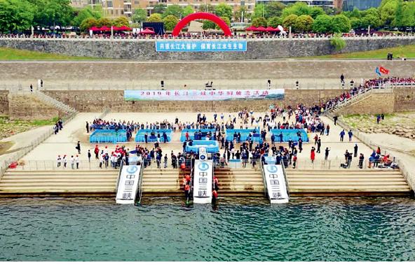 “2019年长江三峡中华鲟放流活动”在宜昌市举办,放流地点在长江珍稀鱼类放流点 图/中新社