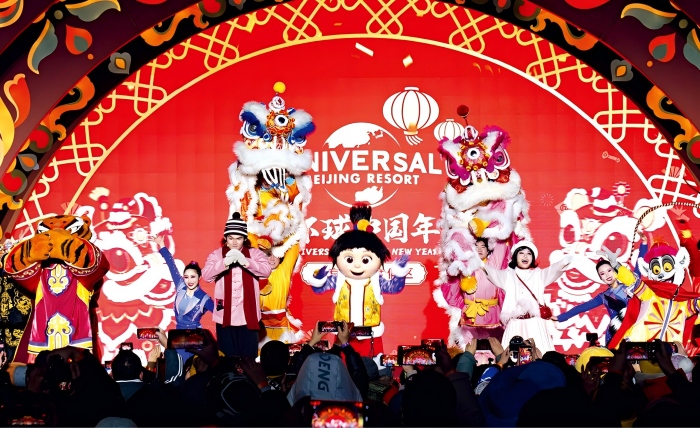 2026年1月23日至3月3日,北京环球度假区开启“环球中国年”主题活动,将中国传统舞狮文化与美国经典动画形象巧妙交融 图/本刊记者 董 宁