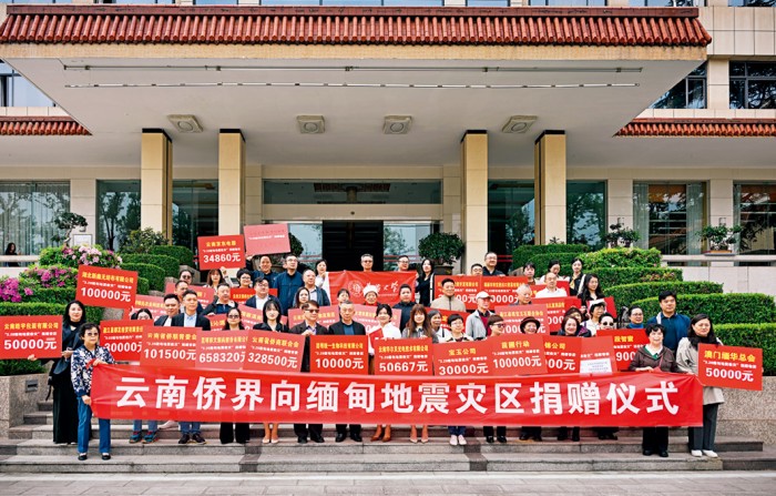 2025年4月7日,云南侨界向缅甸地震灾区捐赠仪式在昆明市举行