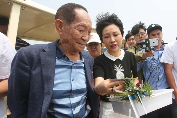 袁隆平,中国研究与发展杂交水稻的开创者,中国工程院院士,被誉为“世界杂交水稻之父”,创造了水稻亩产上千公斤的世界纪录,其毕生追求的目标在于如何能够让水稻更高产。已经88岁的袁隆平不久前透露,他目前正在攻克杂交水稻的两个难题,一个是杂交水稻大面积示范亩产1200公斤,而另外一个则是研发“海水稻”。