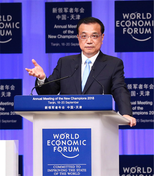 2018年9月19日上午,中国国务院总理李克强在天津梅江会展中心出席2018年夏季达沃斯论坛开幕式并发表特别致辞
