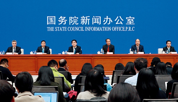 2018年10月30日,北京,国务院新闻办公室举行新闻发布会,请银保监会副主席王兆星、工商银行董事长易会满、建设银行董事长田国立、中国人民保险集团公司董事长缪建民、泰隆银行董事长王钧介绍银行业和保险业服务民营、小微企业有关情况,并答记者问
