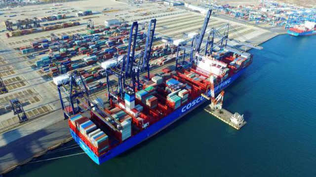 大连港口码头正在进行装载作业的船舶 辽港集团新闻中心 供图