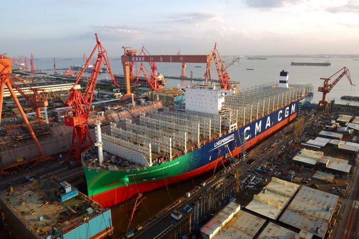 今天下水的首制船计划于明年4月底交付。9艘新建船舶将于2020年加入达飞船队,并被投入亚欧航线(亚洲-北欧)的运营。