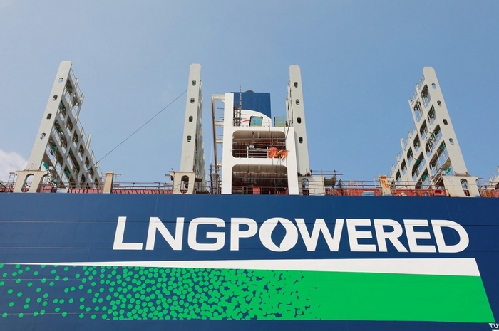 船身上的“LNG POWERED”(液化天然气动力)标识。