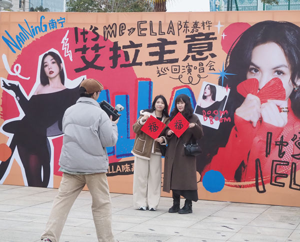 2月7日至8日,中国台湾歌手陈嘉桦的“艾拉主意”演唱会在广西体育中心体育场举办。场馆内笙歌鼎沸,歌迷的欢呼尖叫声此起彼伏,发光应援棒随着音乐有节奏地挥动着。引人注目的是,场馆外的热闹气氛丝毫不输场内:在场馆外的喷泉广场上,以“跟着演唱会去旅行”为主题的文化市集里人头攒动,游客和本地市民聚集在摊位前,品尝各色当地小吃,购买特色工艺品。在此刻,演唱会热潮与城市文化形成了一种和谐的共鸣。