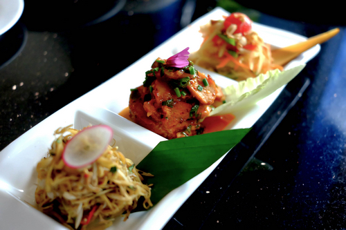 前菜:傣式芭蕉花沙拉、泰式鱼饼沙拉和泰式木瓜沙拉