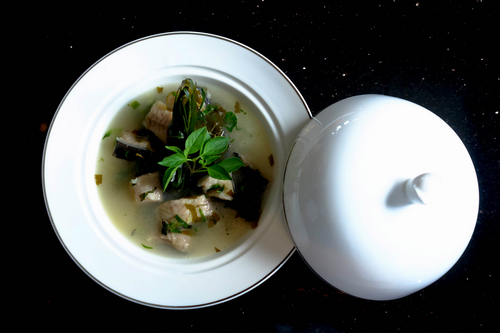 鲜嫩的鱼肉、软糯却不失弹性的胶质鱼皮,奶白色的鱼汤香浓鲜美,具有独特酸味的酸野菜调和了鱼汤的浓郁,正是汤中这淡淡酸爽令人食指大动。
