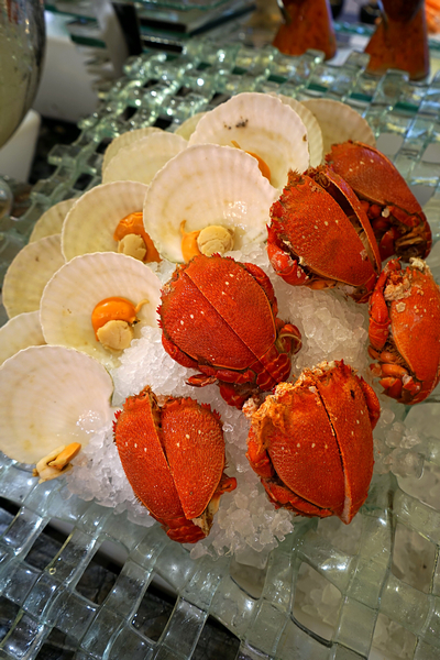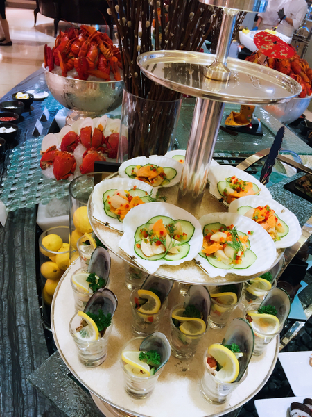 每逢周日,名副其实的完美顶级大餐将在此呈现。伴随瑞吉酒店特有的军刀开香槟仪式,景苑咖啡厅愉快的周日早午餐正式拉开帷幕。从波士顿龙虾、阿拉斯加雪蟹、挪威三文鱼,到美国、澳大利亚进口的现杀生蚝、冰镇鲍鱼,无限供应的海鲜成了一道挑逗味蕾的风景线。不仅如此,早午餐包含的上百种美味珍馐更会让人大饱口福:开胃菜、寿司刺身、各式热炒、大厨精致烹饪的蘑菇烩饭及诱人的瑞吉奶酪蛋糕、BBQ等甜品令人目不暇接,特别是餐厅特选酩悦香槟和进口葡萄酒可无限量畅饮,美食配美酒让人尽欢。